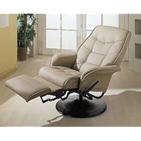 This is a brand new Modern Style Taught Pulled Bone Leatherette Fabric Cushion Swivel Recliner Chair with Tilt Back Function. Item is designed to perfection and crafted to be practical and stylish in decor for your home furniture. Item may require simple assembly. Dimension: Recliner - 21"L x 60"L (Reclined), 36"W x 41 1/2"H (Sitting Up Position). Call AtHomeMart Customer Service at 1800-405-0447 for more information. Lowest factory direct price guarantee.